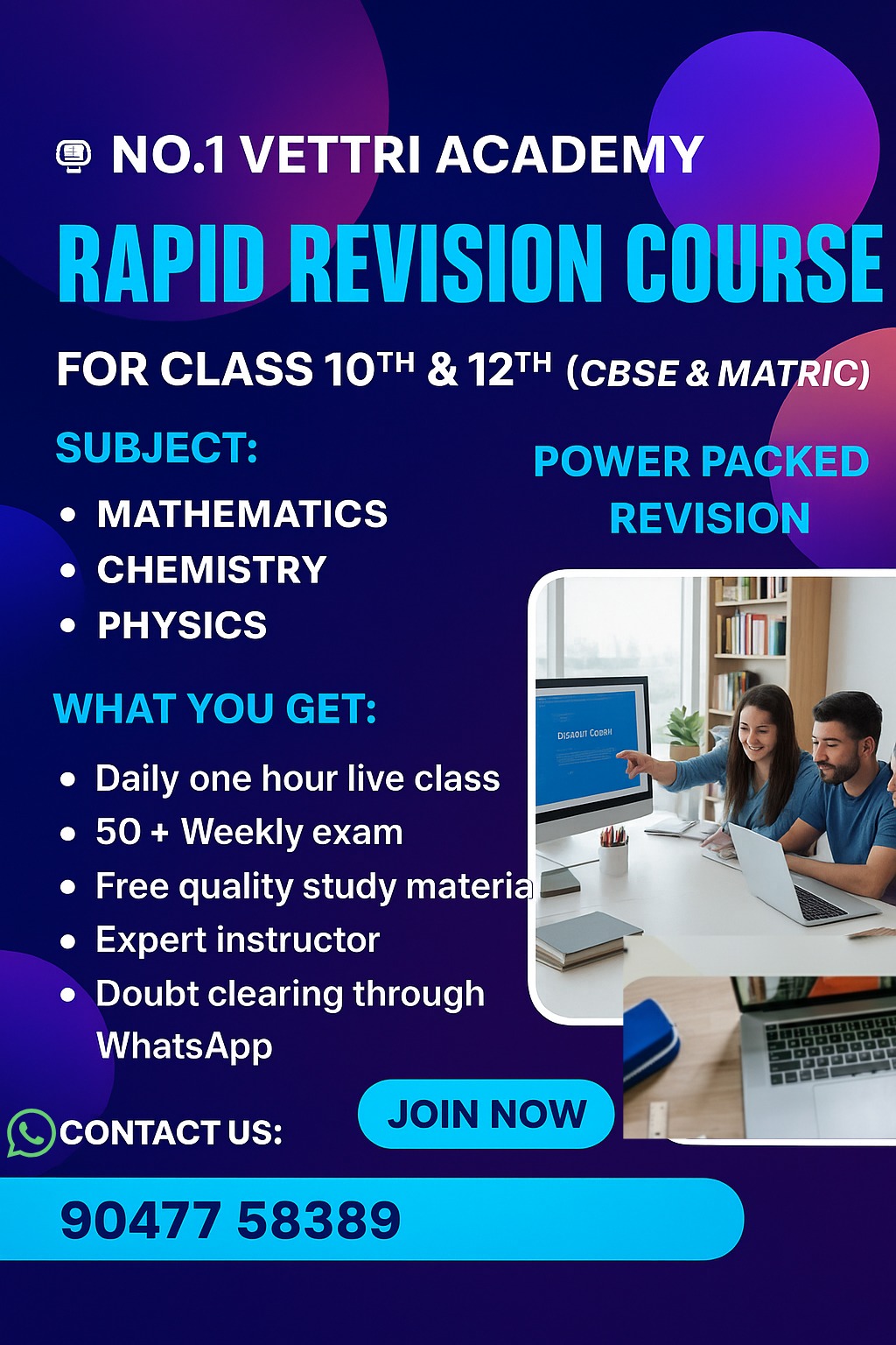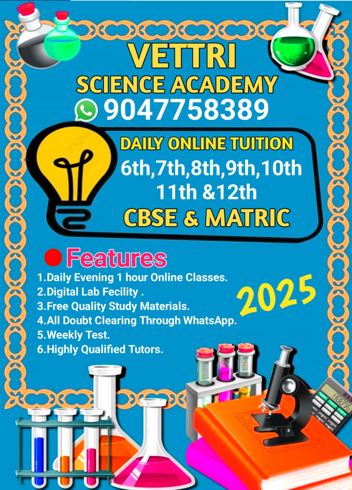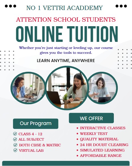 Join No.1 Vettri Academy to experience professional, interactive, and effective online tuition that prepares you for academic excellence and career success.